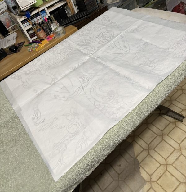 So I’m on the speedy track with the first quilt of 2024. Why? I have a collaborative project I’m supposed to be doing in the next few months, and I also need to (want to!) make a baby quilt for a good friend having her first. Also there’s a deadline and I don’t have anything at all for it, which is weird and frustrating (there’s that word again). So I traced the whole thing in just three nights, I think…