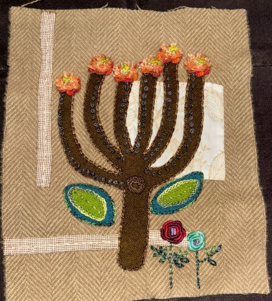 I’m taking a few months of Rooted blocks with me (Sue Spargo BOM)…but this one was almost done, so I finished it.