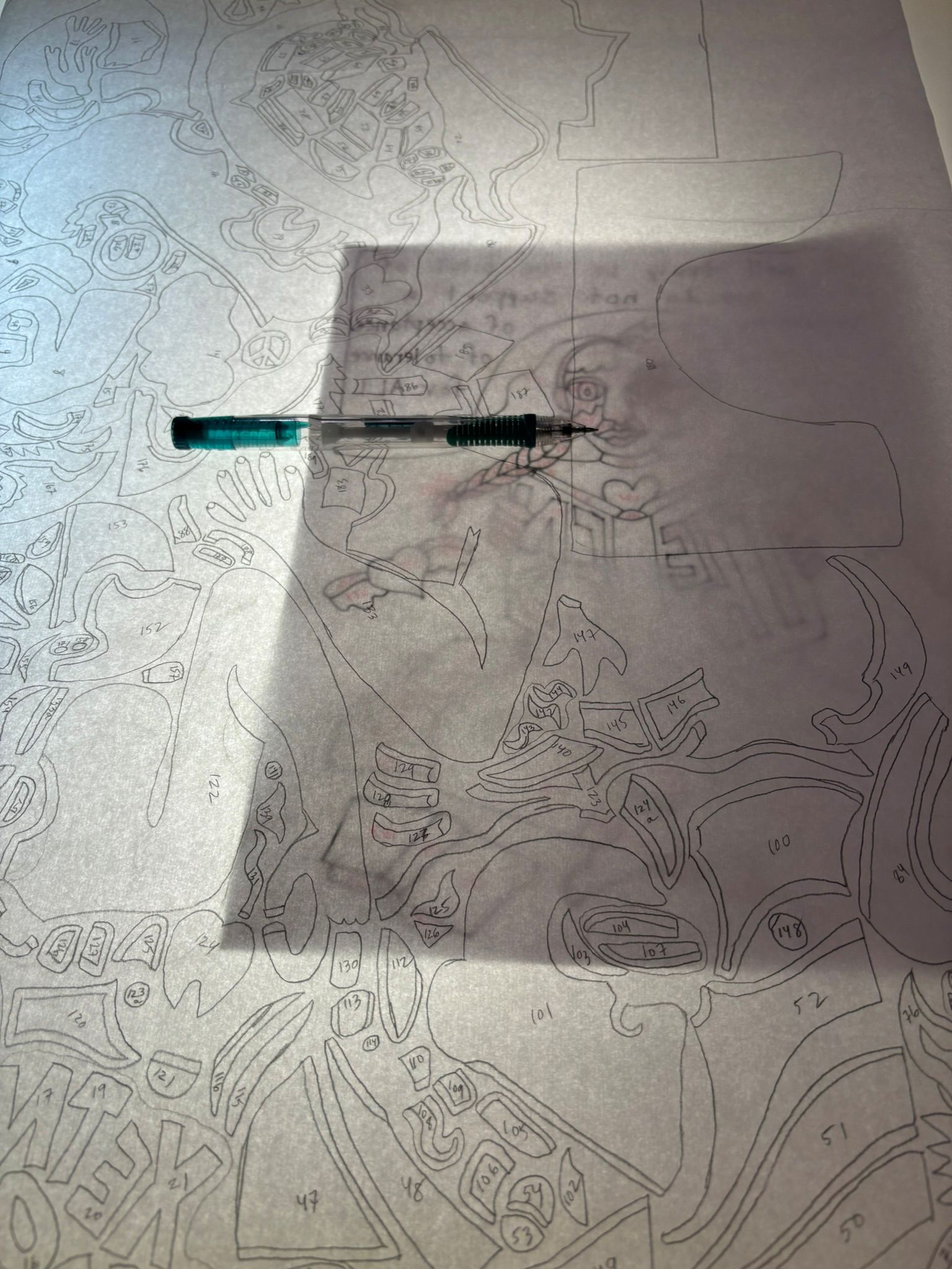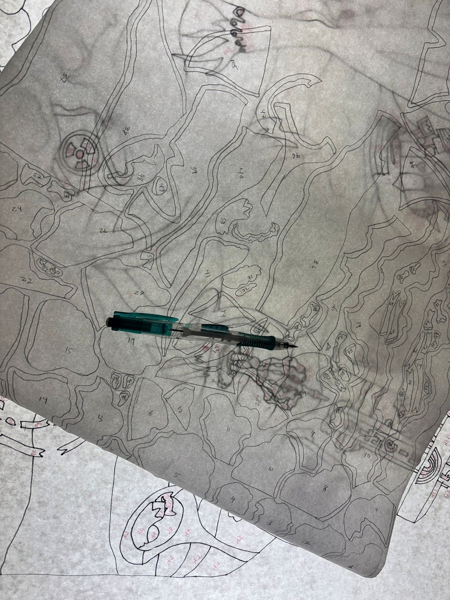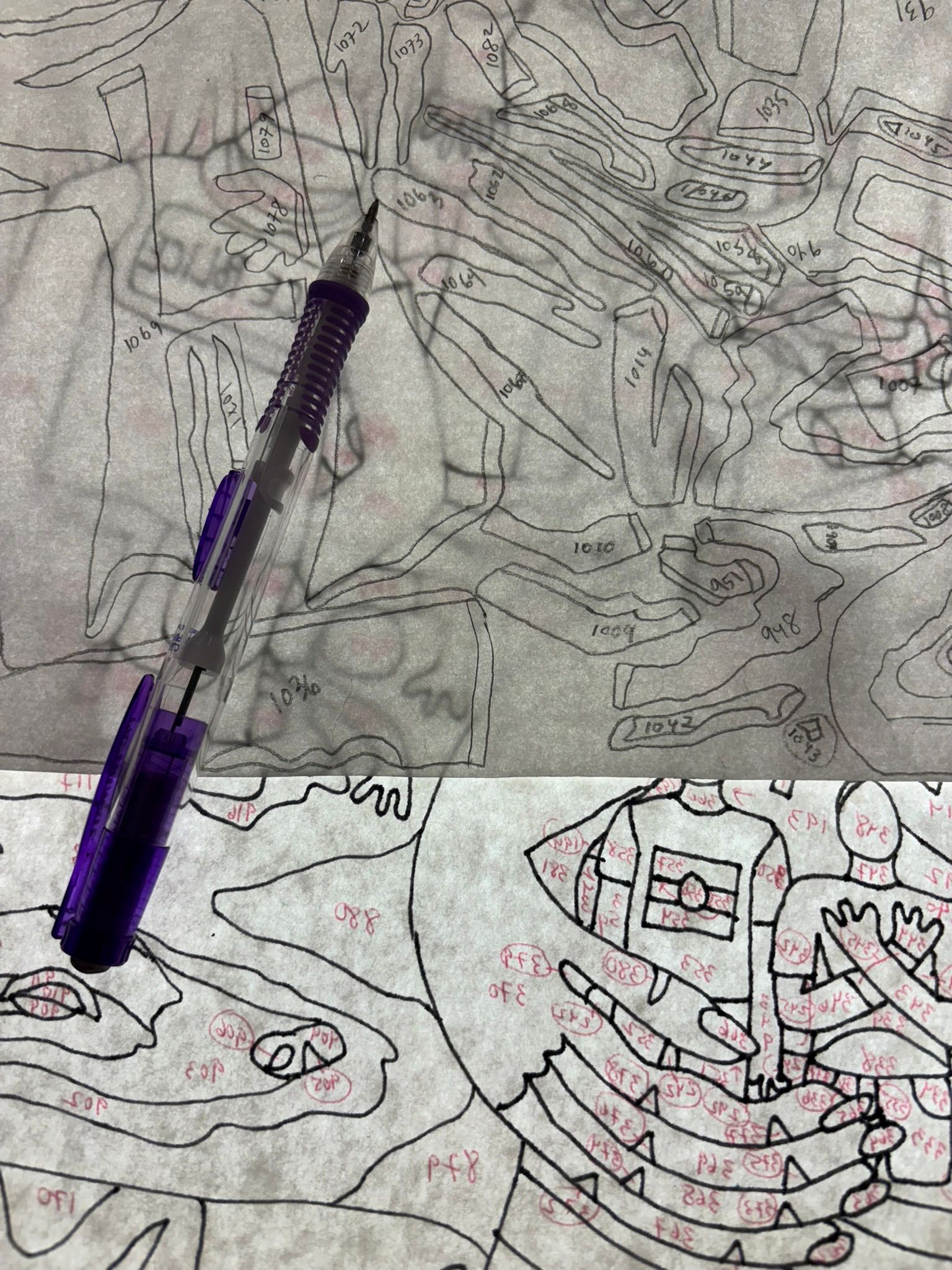 So let’s do the tracing stuff first. Still doing it. Thought putting that yellow post-it on the drawing marking where I’d last been, writing the next number to trace on there, that’s smarter than I have been in the past.