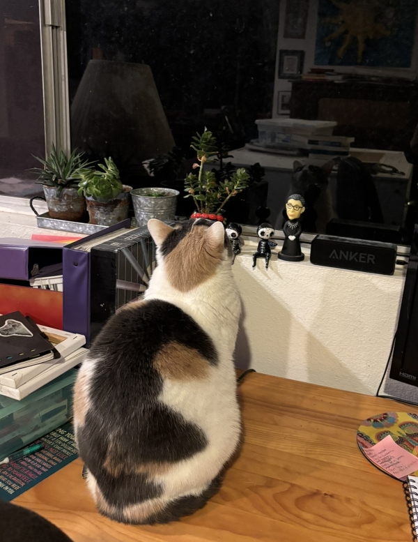 Our trees were trimmed this week and the guys somehow broke like 6 pots and full on disappeared some with plants and I’m upset but I get it. I moved the ones I thought they’d hit and they full on hit others instead. So I’m also sad. It’s OK; the tree guy is paying to replace pots but there was this adorable little succulent that had just bloomed and it’s just gone and I’m sad about it. I’m also sad about my kitty being gone, even though it’s been two months. Bowie keeps coming in here looking for her, and I’m like SAME dude, I keep looking for her too.