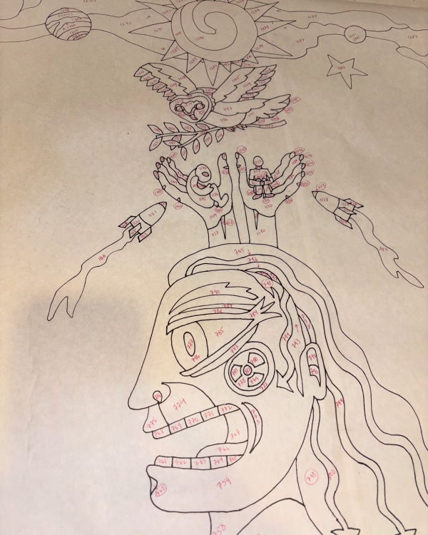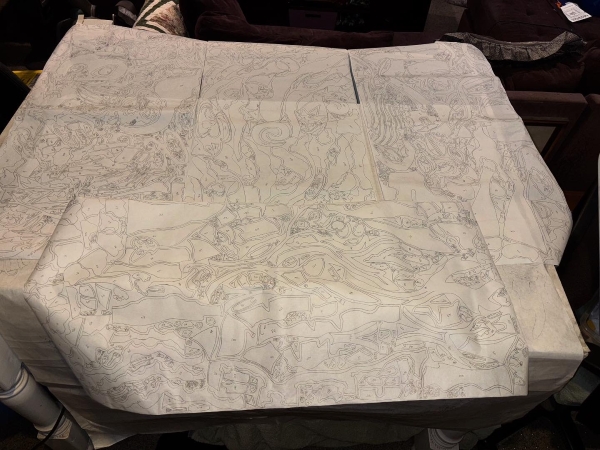 Meanwhile, at home, I finished drawing the big piece…added that target and a few other things.