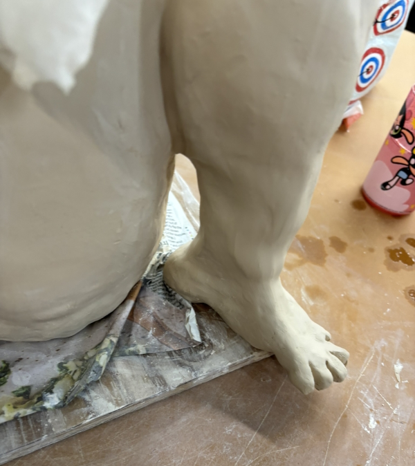 Monday afternoon, I went to ceramics and worked on part two of the current sculpture. I built a tiny man with a gun.