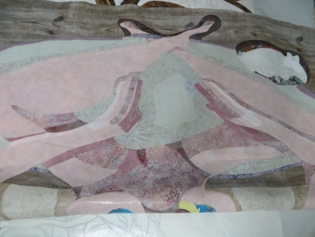 In keeping with the Mother Earth where the plants are covering her. I like it. I could make this into a smaller quilt. In my spare time.