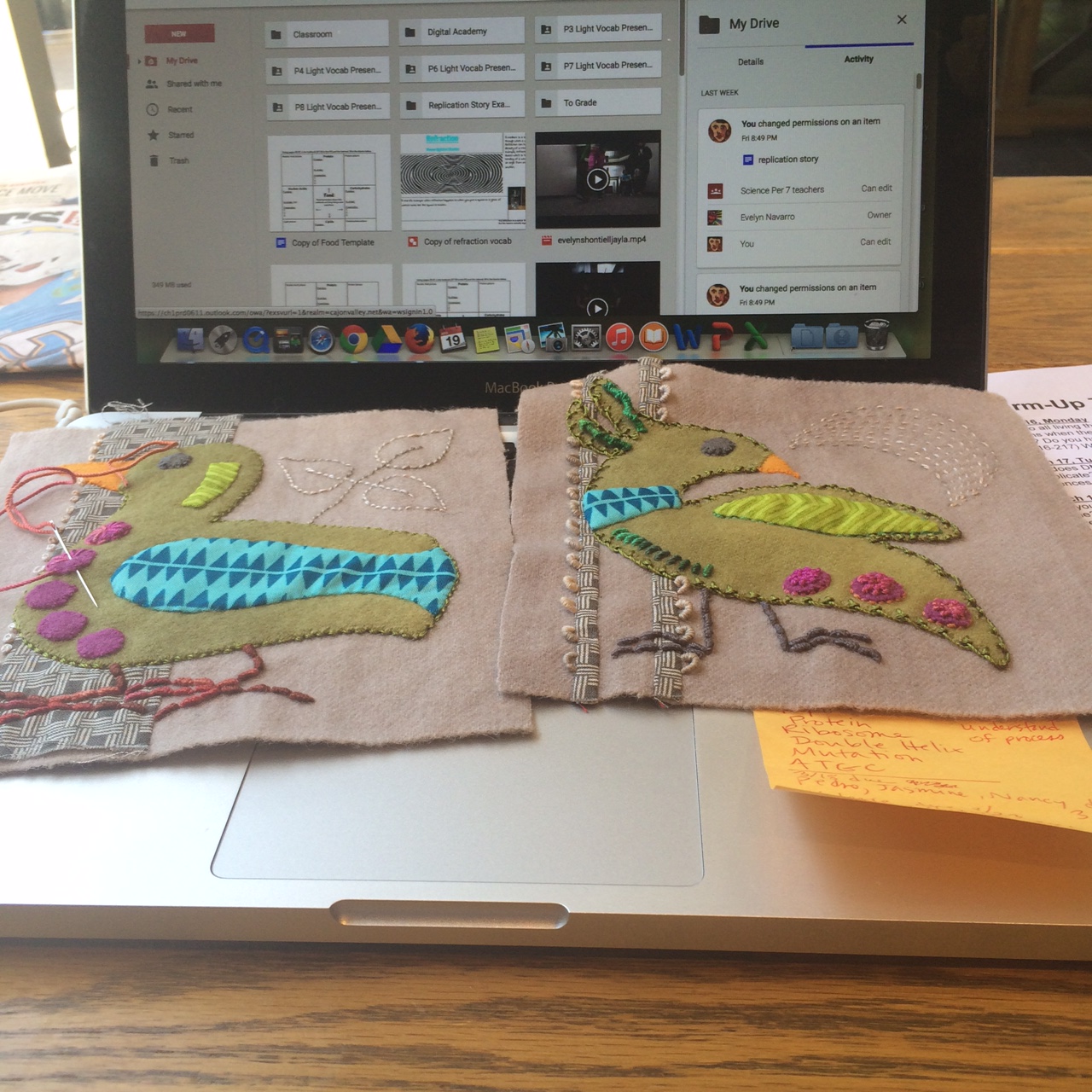 By the way, I have no idea what’s going on with the first picture on the last post. I’ll have to try to fix that later too. They both came from the phone camera app in exactly the same way…no idea why WordPress had an issue. I did draw on the plane both ways and in the room on the last night there. I wasn’t thinking too hard about drawing…just wanted to get pen on paper. I don’t think I’d drawn all summer, except finishing up the cats (what cats? I haven’t done any cats. Shhh. Maybe no one will notice that they are still piles of Wonder Under that have been cut out.) and the drawing for the big quilt I’m ironing now. So it was kind of a relief to fill up a few pages. Very meditative. In fact, my meditation app prompted me in the middle of the plane flight, and I thought, this is the perfect place to meditate, but then I drew instead. Ah, priorities.