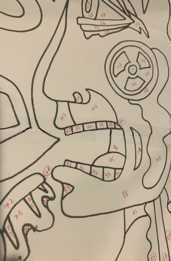 When I was numbering, I just shoved it over…you can see some of it on the right…but to trace, I need to take the top board off. That’s harder. Usually I just leave it off until I’m done tracing. I’m not sure I can do that now.