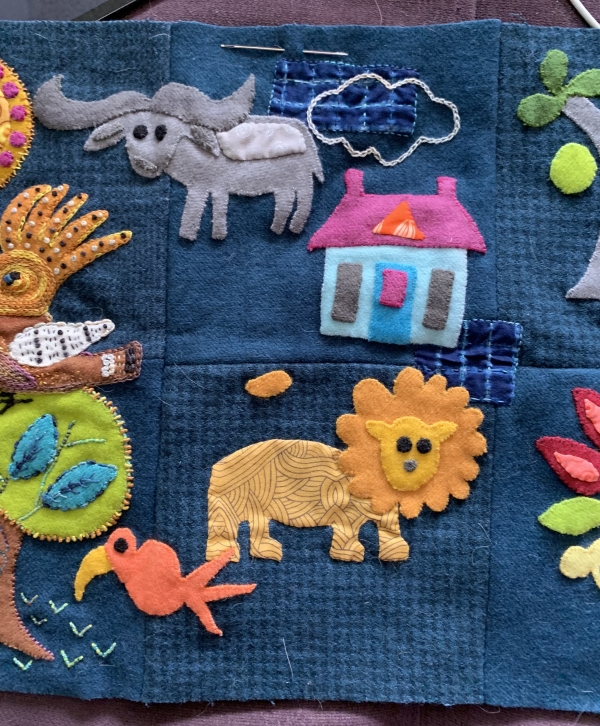 So that whole section is done until I sew it to the next section, so I can finish the road and flowers on the other side of it.